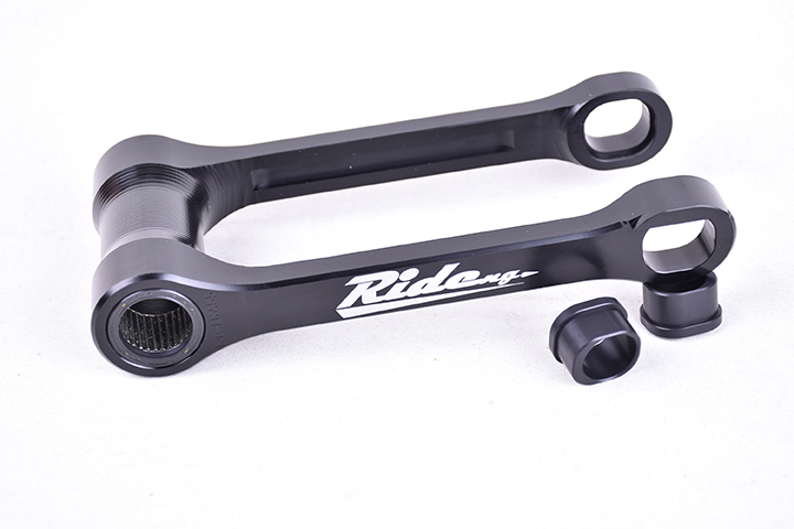 This adjustable link arm comes with a reversible insert. Testing determines the performance setting for competition use at a motocross track. With the insert in the forward position there is better weight distribution and chassis balance with a 6mm drop on a KTM, Rockstar Husqvarna or GasGas in ride height. By flipping the insert, you get a substantial lowering of the rear of 22mm on these models, for those using the motorcycle in less challenging conditions (or for less experienced riders). This product is designed to be used with the stock center knuckle and the rider’s recommended spring rate. Recommended sag with the Rideng Link is 102-104mm. NOTE 1: With the insert in lowering mode, it is NOT recommended for aggressive track use, the shock will bottom out much easier due to the added leverage produced by this longer center to center distance. NOTE 2: If you have a 2025+ Husqvarna FC or TC you can get a little more performance out on the track by setting the insert to lowering mode (4mm drop). There is no lowering setting for these models as they have already been lowered from the factory. Also note 2025+ FE or TE models will be 15mm lower in the rear in lowering mode.
