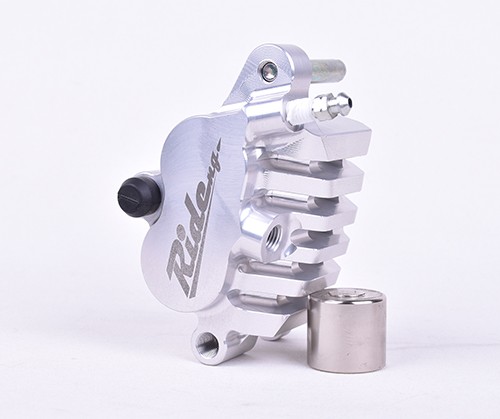 Advantages of our Billet Front Brake Caliper V2: 1. more powerful braking with a softer pull at the lever and a better feel for traction (from larger pistons). 2. better cooling with openings that allow air to pass through the caliper body. 3. 80% less flex from a much stiffer body design. 4. Less drag on the front wheel. 5. Easier to bleed (we moved the location of the bleed valve to top dead center). Weighs the same as a stock Kawi/Suz front caliper. Will fit 2007+ YZ250F; 2008+ YZ125/250/450F; 2016+ WR/FX (2015+ WR250F/250FX) but the 3/8" stock master cylinder must be upgraded to 11mm (ie:2015 WR450f) or you can use a late model CRF450 front master cylinder (2019+) for best results (also available from Ride Eng. pn: MX-CRM11-AS). Note: Caliper will not fit 2019+ CRF models without using the 2015-18 OEM hanger bracket (260mm rotor) or Ride Eng hanger bracket (CR-HB270-BA) for 270mm rotors. Also fits KTM/Husq/GasGas models but only with a Ride Eng. 270mm rotor kit pn: RT-00270-KT and a BrakeTec (2024 GasGas MC450) or Nissin 11mm master cylinder (pn: MX-CRM11-AS). By combining it with our brake caliper you are getting the best braking system available. This combination is not just powerful but its also very progressive allowing riders to feel how much traction is available at the tire's contact patch. Great for novices to pros. The added performance is quite noticeable even on models equipped with brembo calipers.
