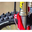 This billet brake line mount is designed to hold braided steel brake lines, which are always narrower than stock plastic lines.