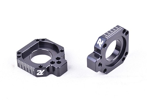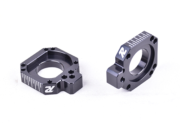 These new precision machined billet axle blocks utilize a YZ250 axle (P.N.: MX-AXL22-KT - required) allowing the left axle block to float similar to the Japanese design. The Japanese axle which is forged also provides a little more flex that the stock axle which is just a pipe with threads on each end. Advantages are better tire traction and more comfort from the rear of the motorcycle under hard acceleration. Weighs just under the stock system.