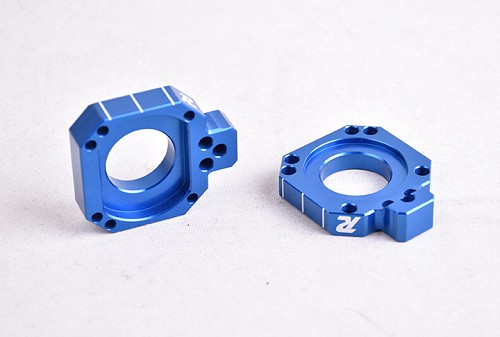 These new precision machined billet axle blocks utilize a YZ250 axle (P.N.: MX-AXL22-KT - required) allowing the left axle block to float similar to the Japanese design. The Japanese axle which is forged also provides a little more flex that the stock axle which is just a pipe with threads on each end. Advantages are better tire traction and more comfort from the rear of the motorcycle under hard acceleration. Weighs just under the stock system.