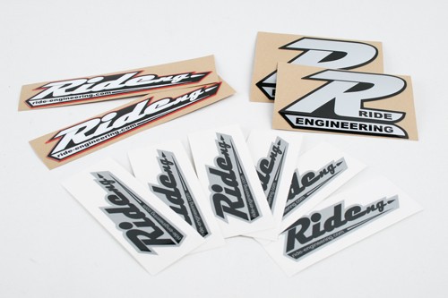 Includes six 4" Ride decals, two 6" heavy vinyl Ride decals and two 3" tall heavy vinyl "R" logo decals.