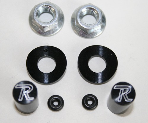 Ride Eng.'s lightweight kit includes 2 billet valve caps, 2 rim-lock spacers (each sized for the front and rear rim diameter), 2 hex flange nuts to keep the rim-lock spacers secure and 2 small o-rings to help seat the valve caps. Both functional and cosmentic, the rim-lock spacers create a uniform contact surface to the rim to help prevent cracking.