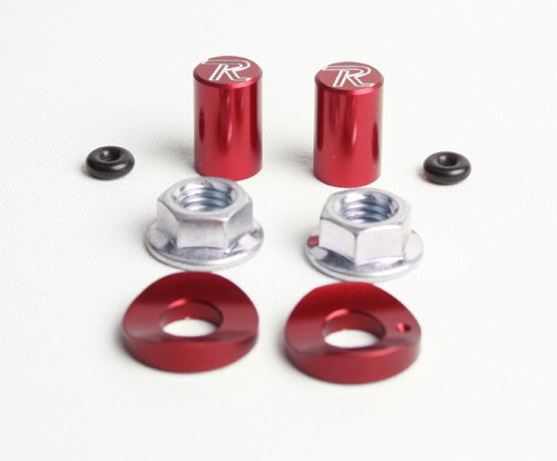 Ride Eng.'s lightweight kit includes 2 billet valve caps, 2 rim-lock spacers (each sized for the front and rear rim diameter), 2 hex flange nuts to keep the rim-lock spacers secure and 2 small o-rings to help seat the valve caps. Both functional and cosmentic, the rim-lock spacers create a uniform contact surface to the rim to help prevent cracking.